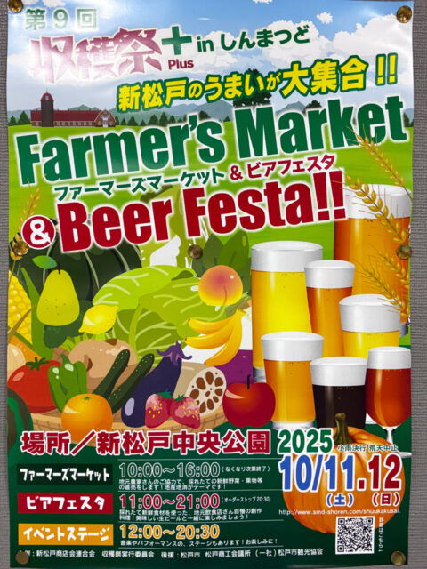 10/11(土)12(日)新松戸中央公園にて「収穫祭プラス in しんまつど ファーマーズマーケット&ビアフェスタ」が開催されます。
