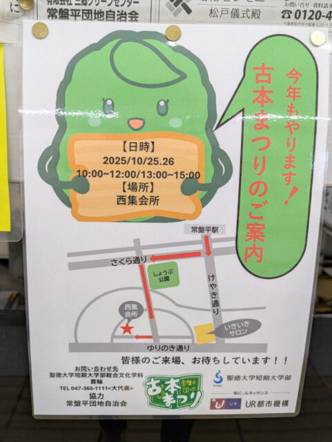 10/25(土)26(日)常盤平団地 西集会所にて「古本まつり」が開催