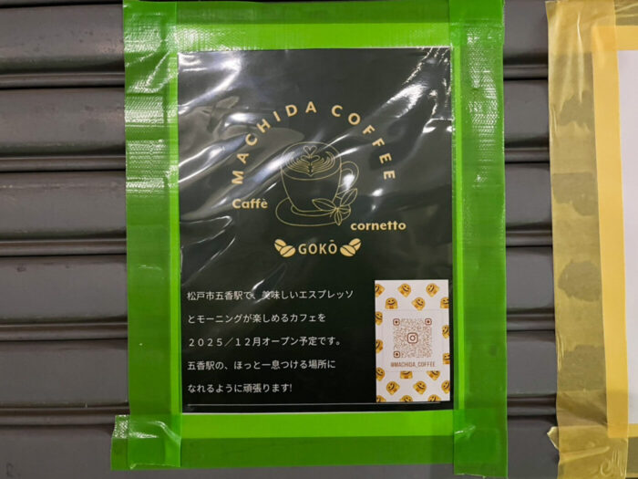 五香駅東口のカフェは「MACHIDA COFFEE」エスプレッソとモーニング楽しめるカフェは12月オープン予定