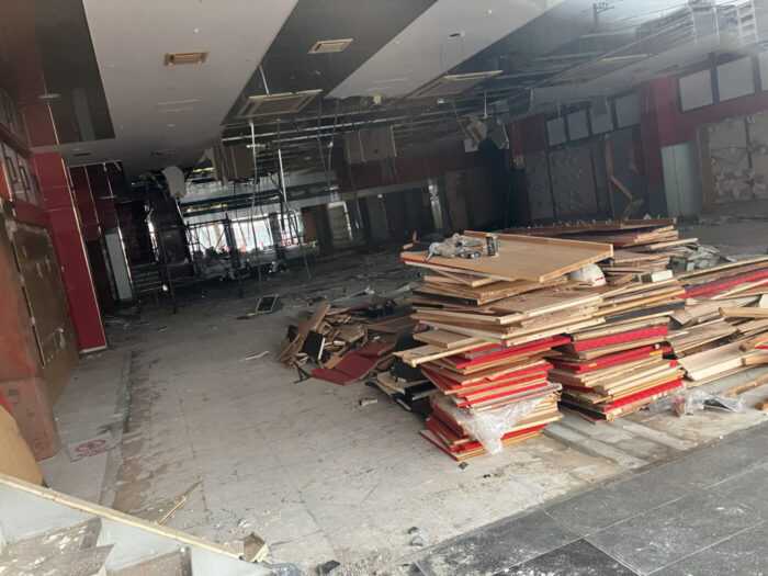 しかし、数カ月の月日を経て、シャッターが空いた状態になり、解体工事が再開されているようでした。