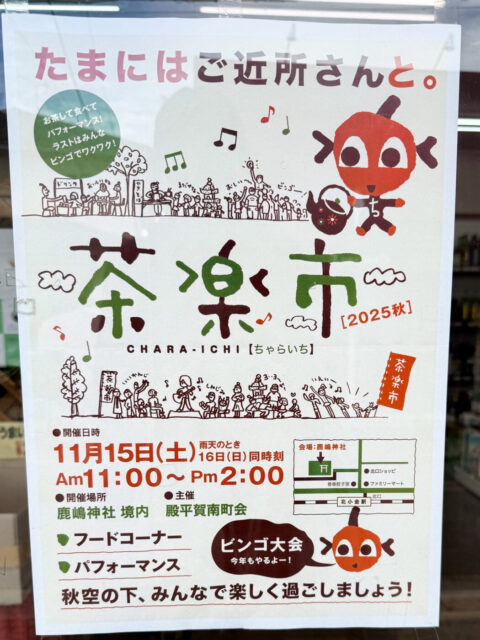 11/15(土)北小金駅北口、鹿嶋神社にて「茶楽市」が開催されます。