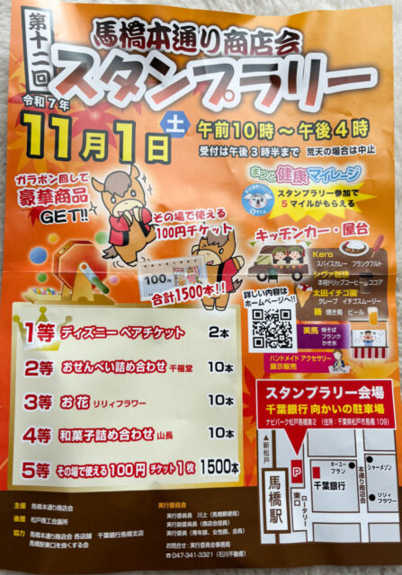 11/1(土)馬橋駅東口にて「第12回 馬橋本通り商店会 スタンプラリー」が開催されますよ。