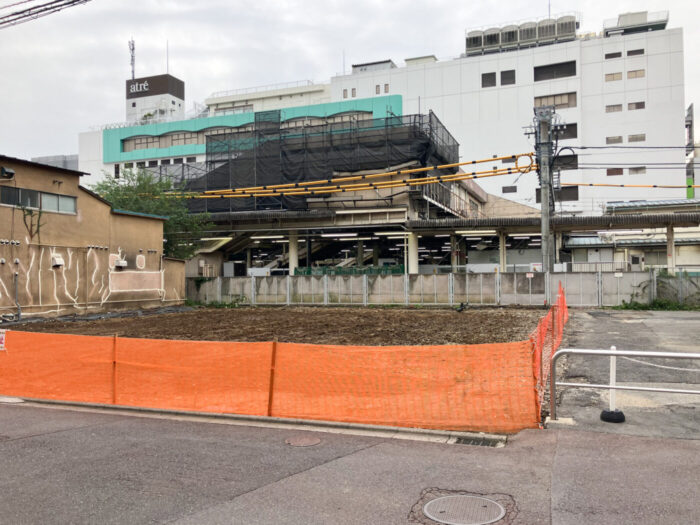 松戸駅東口の調剤薬局「ユーエス・ファーマシー2号店」の解体工事が完了、更地に、今後新築工事に移行