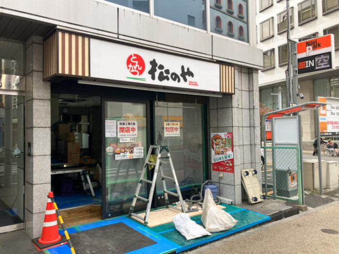 松戸駅西口、とんかつチェーン「松のや 松戸店」が現在休業中、11/14(金)15時リニューアルオープン予定