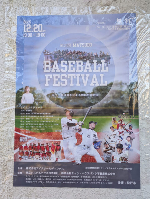 12/20(土)松戸運動公園野球場にて「第2回 MATSUDO BASEBALL FESTIVAL」が開催されます。