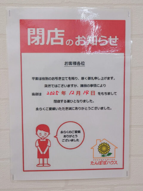 プラッツ五香の古着店「たんぽぽハウス」が12/14(日)をもって閉店