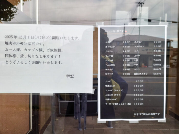 松戸市牧の原1丁目5のハルキビルに、焼肉店「焼肉ホルモン 幸宏」が12月1日(月)16時からオープンしました。