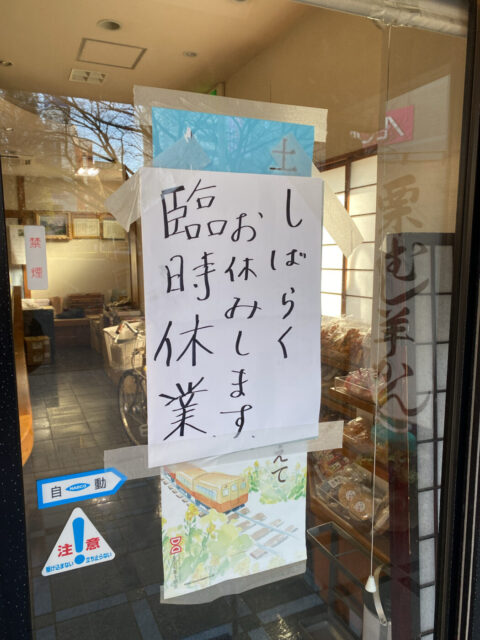 北小金駅南口前「御菓子司 大正堂」が臨時休業、しばらくお休みとの事