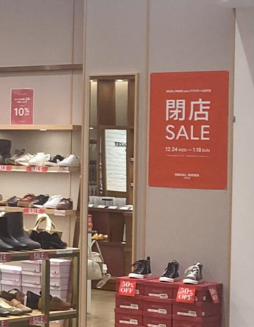 テラスモール松戸2階の靴店「REGAL SHOES a.k.a」が1/18(日)をもって閉店、現在閉店セールが開催中