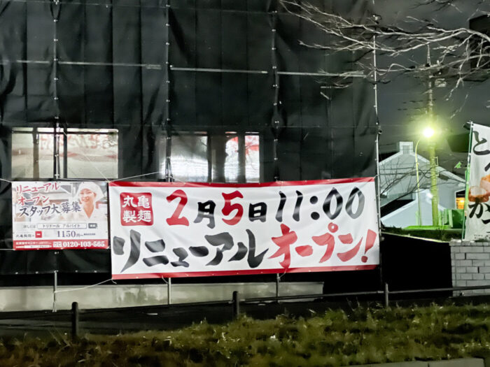 讃岐うどんチェーン「丸亀製麺 松戸二十世紀が丘店」が1/15(木)から改装のため休業中、2/5(木)11時リニューアルオープン予定