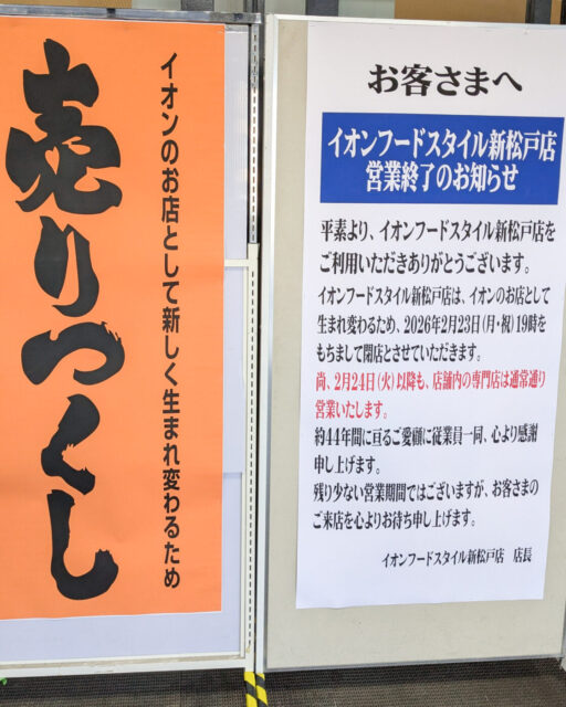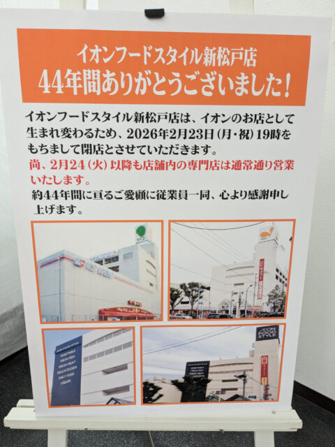 イオンフードスタイル新松戸店が2/23(月)をもって一旦閉店となります。
