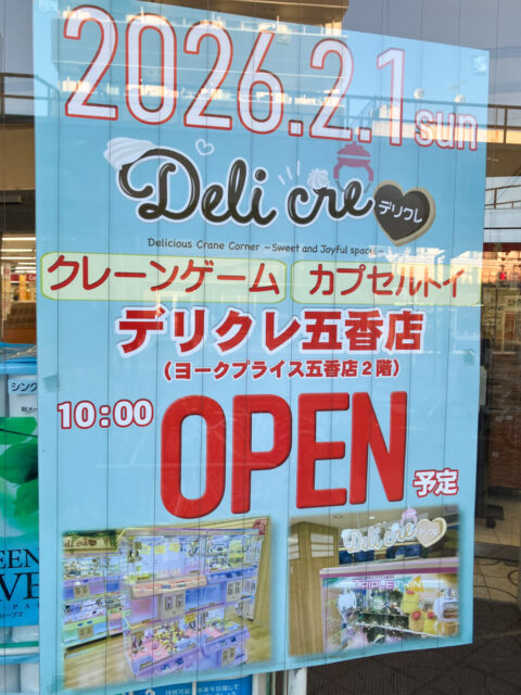 ヨークプライス五香店2階にカプセルトイ・クレーンゲームの「デリクレ五香店」が2/1(日)からオープンしました。