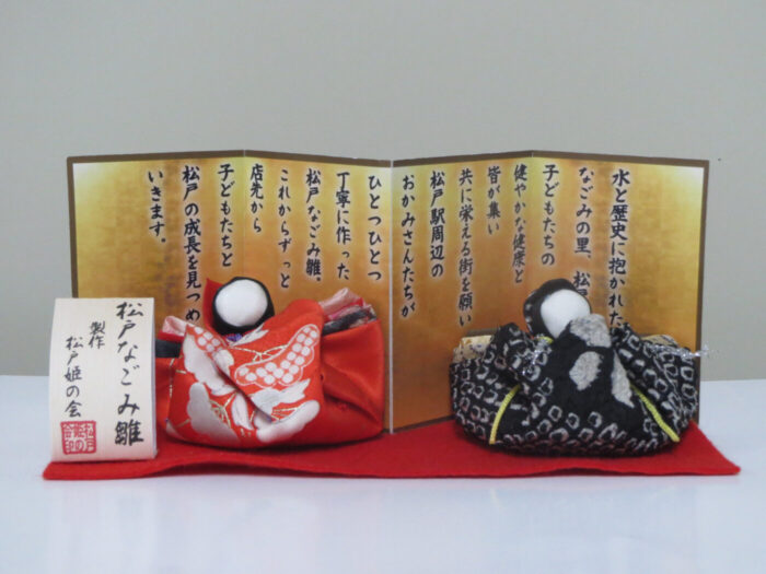 松戸駅周辺のおかみさんたち(姫の会)手作りの「松戸なごみ雛」が主に松戸駅西口周辺の店舗・事業所80カ所に飾られています。