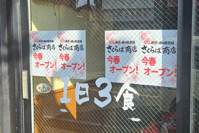 みのり台駅駅前に、99円寿司×焼き鳥酒場「さくらば商店」が今春オープン予定、1日3食酒場跡地