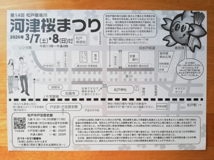 3/7(土)8(日)松戸宿坂川河津桜まつりが春雨橋親水広場から松戸神社~松龍寺~レンガ橋にかけての坂川沿道にて開催【2026】