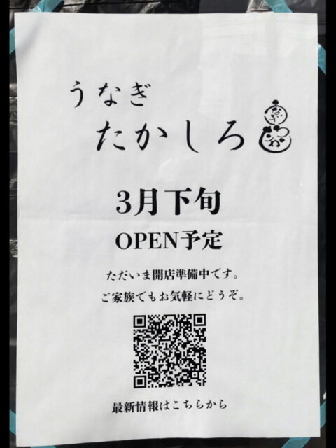 新築マンションLATTICE東松戸1階、東松戸2丁目に鰻屋「うなぎ たかしろ」が3月下旬オープン予定です。