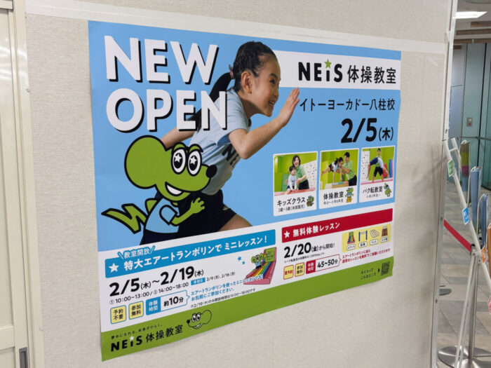 イトーヨーカドー八柱店3階に、子ども向け体操教室「NEiS体操教室イトーヨーカドー八柱店」が2026年2月5日(木)にオープンしました。