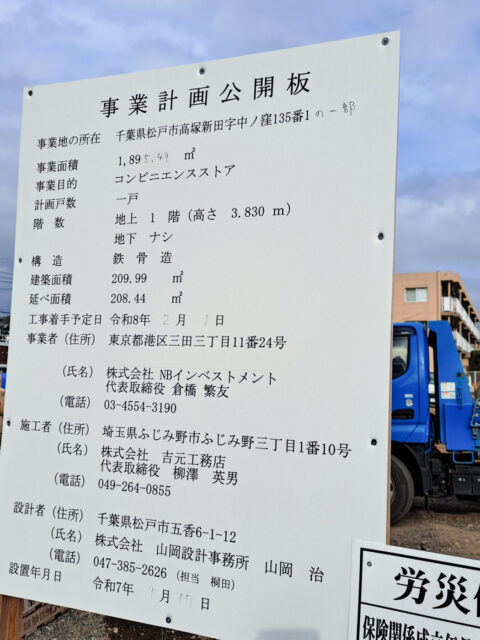 高塚新田、ウエルシア松戸高塚店の向かいにコンビニの建築計画が公開される