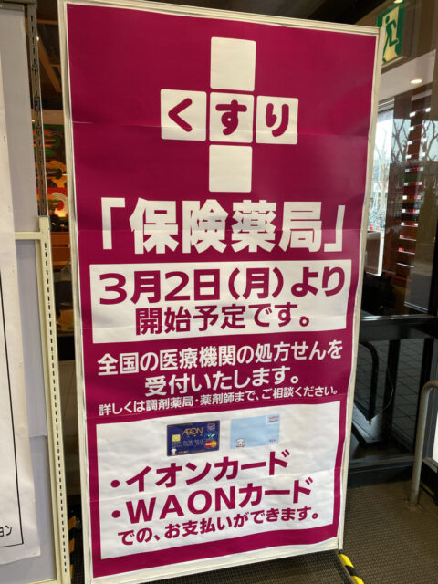イオンフードスタイル新松戸店1階に調剤薬局「保険薬局」が3/2(月)から開始予定、全国の処方箋に対応