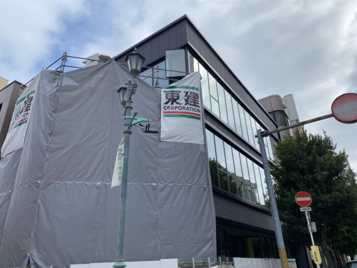 キテミテマツド前のビルがほぼ完成、足場が外され全体像があらわに