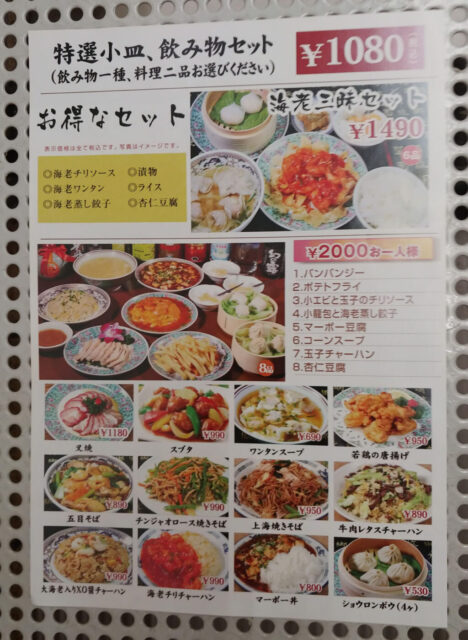 ちょい飲みセットや、海老三昧セット、2,000円のコース料理などもあるようです。