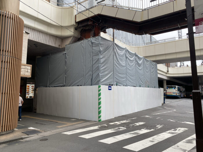 移転前の「松戸警察署 松戸駅前交番」跡が解体へ、外壁で覆われ作業が始まる