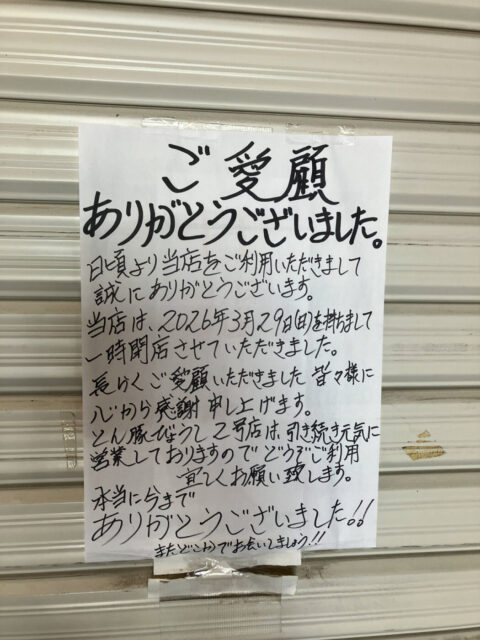 すぐ近くにある2号店は引き続き営業をされているという事なので、今後はそちらをご利用ください。