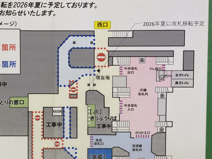 今年の夏ごろに中央改札が現在よりもだいぶ手前に移転される予定となります。改札内がだいぶ広くなりますね。